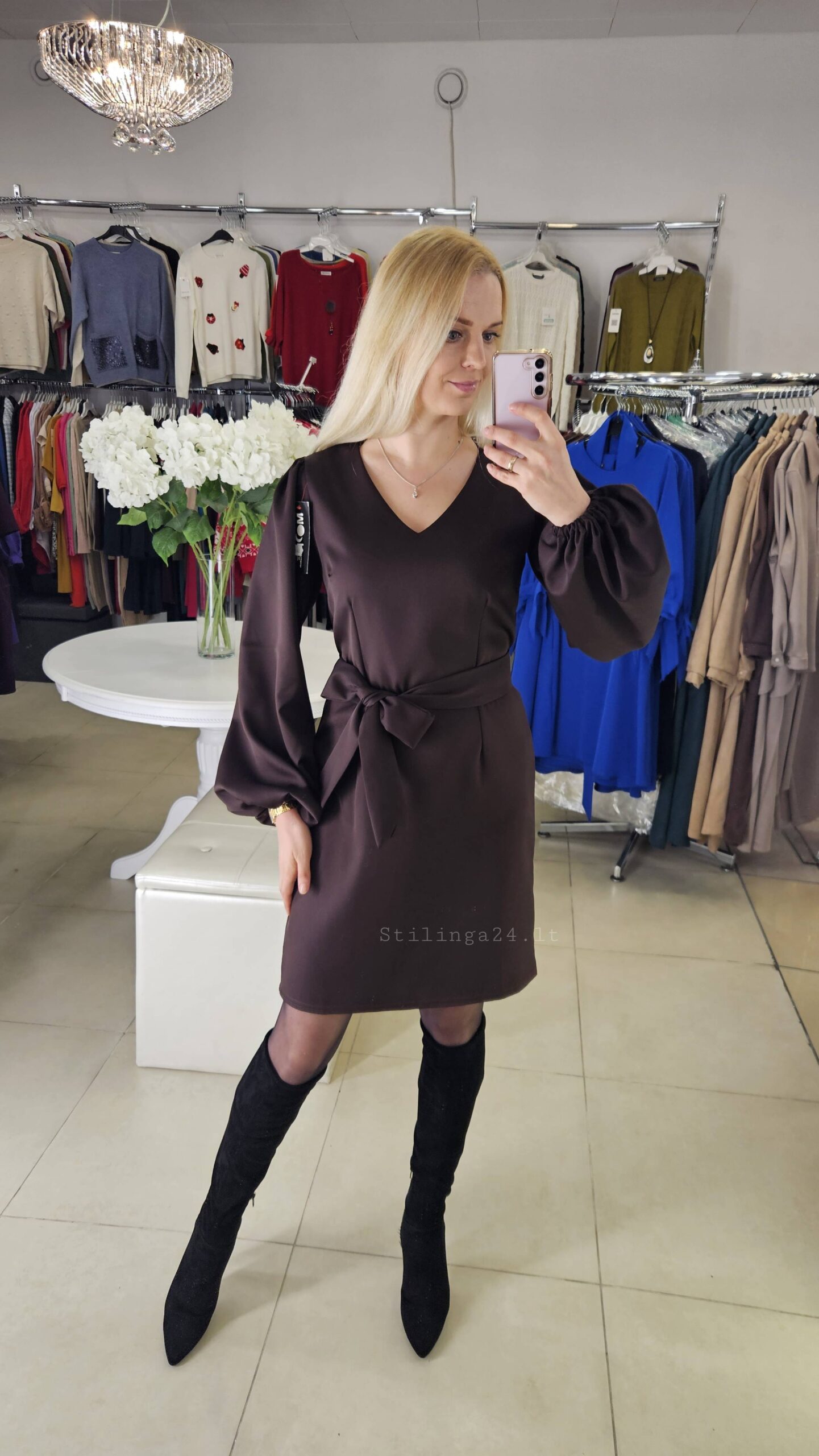 Liemenuota klasikinė suknelė su puošniomis rankovėmis
