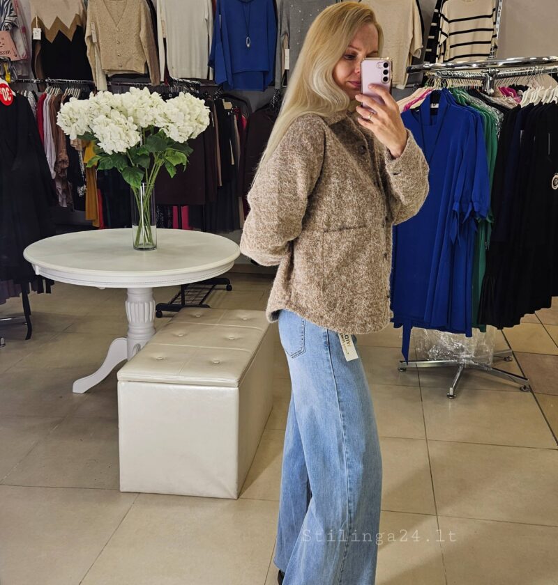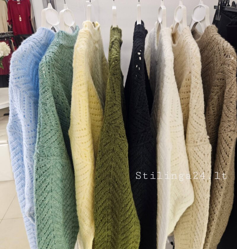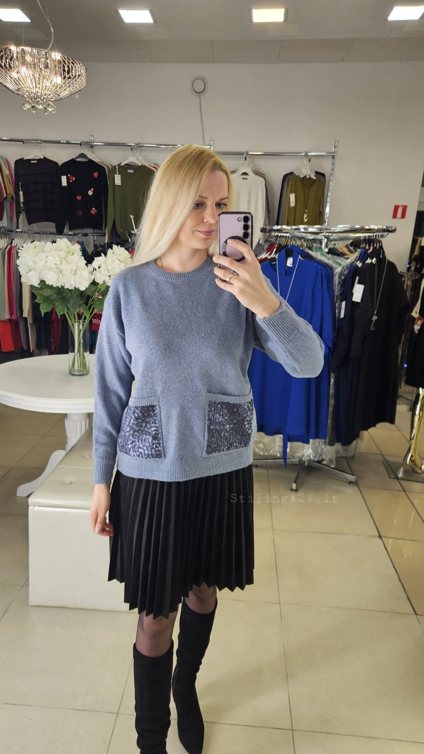 Megztinukas su blizgiais žvyneliais ant kišenių, melsvos spalvos
