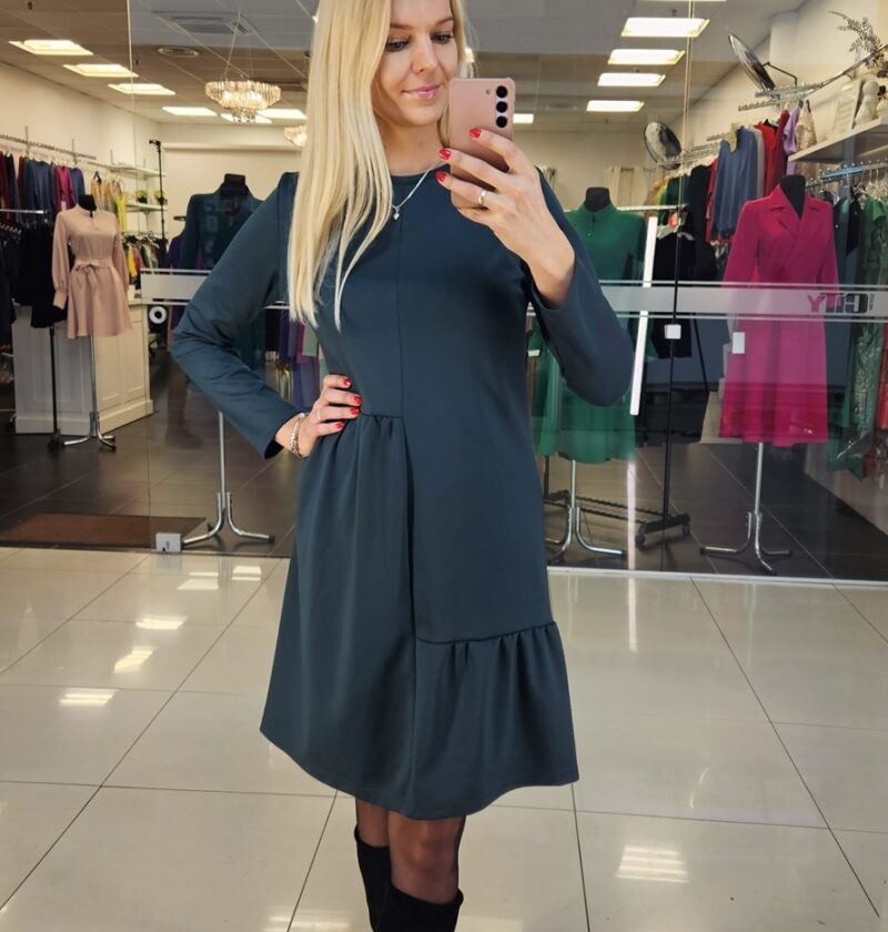 36/S – krūtinė 94 cm., ilgis 59 cm., sijono ilgis 49 cm.