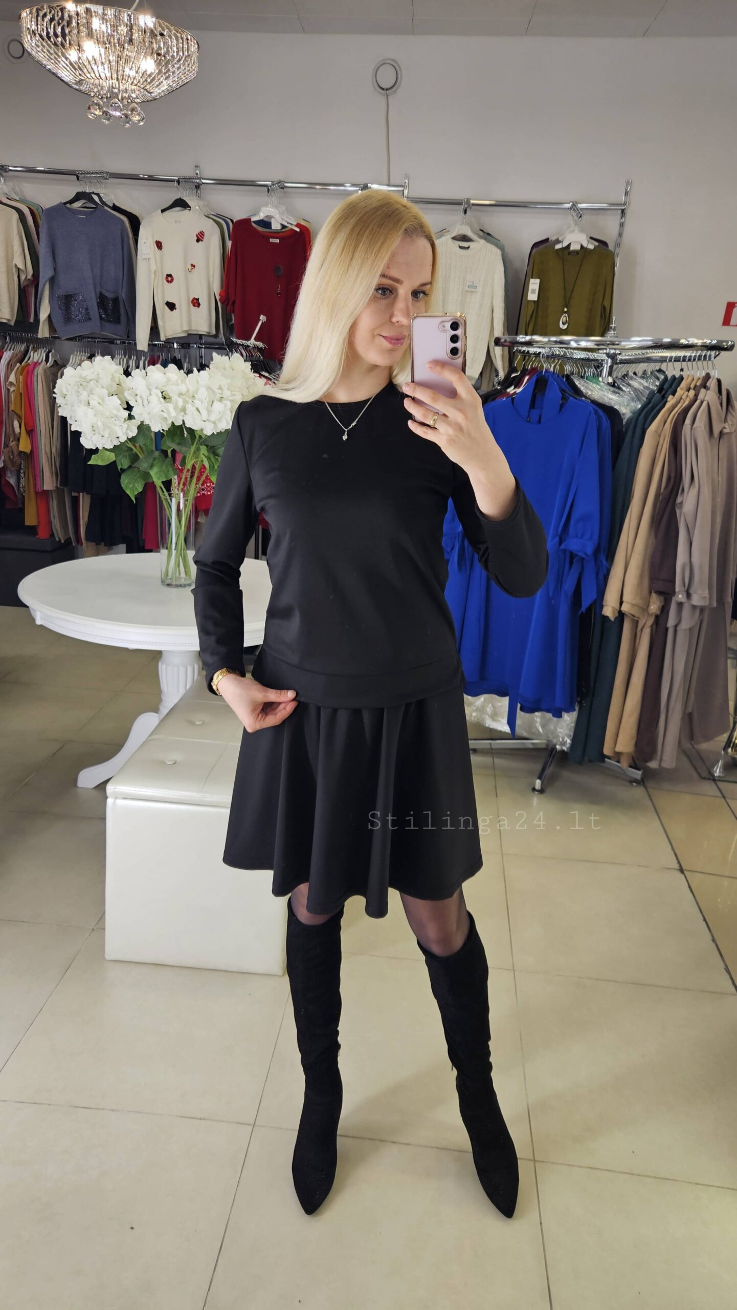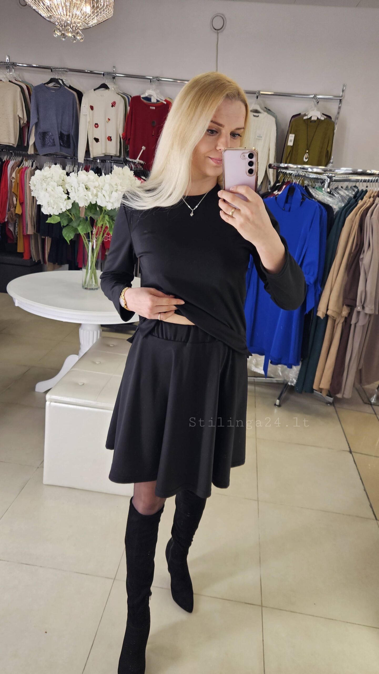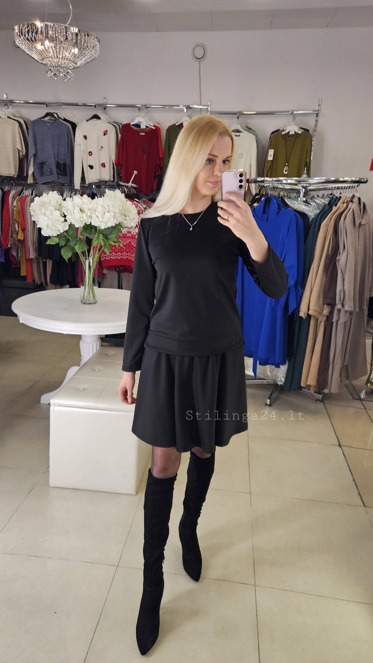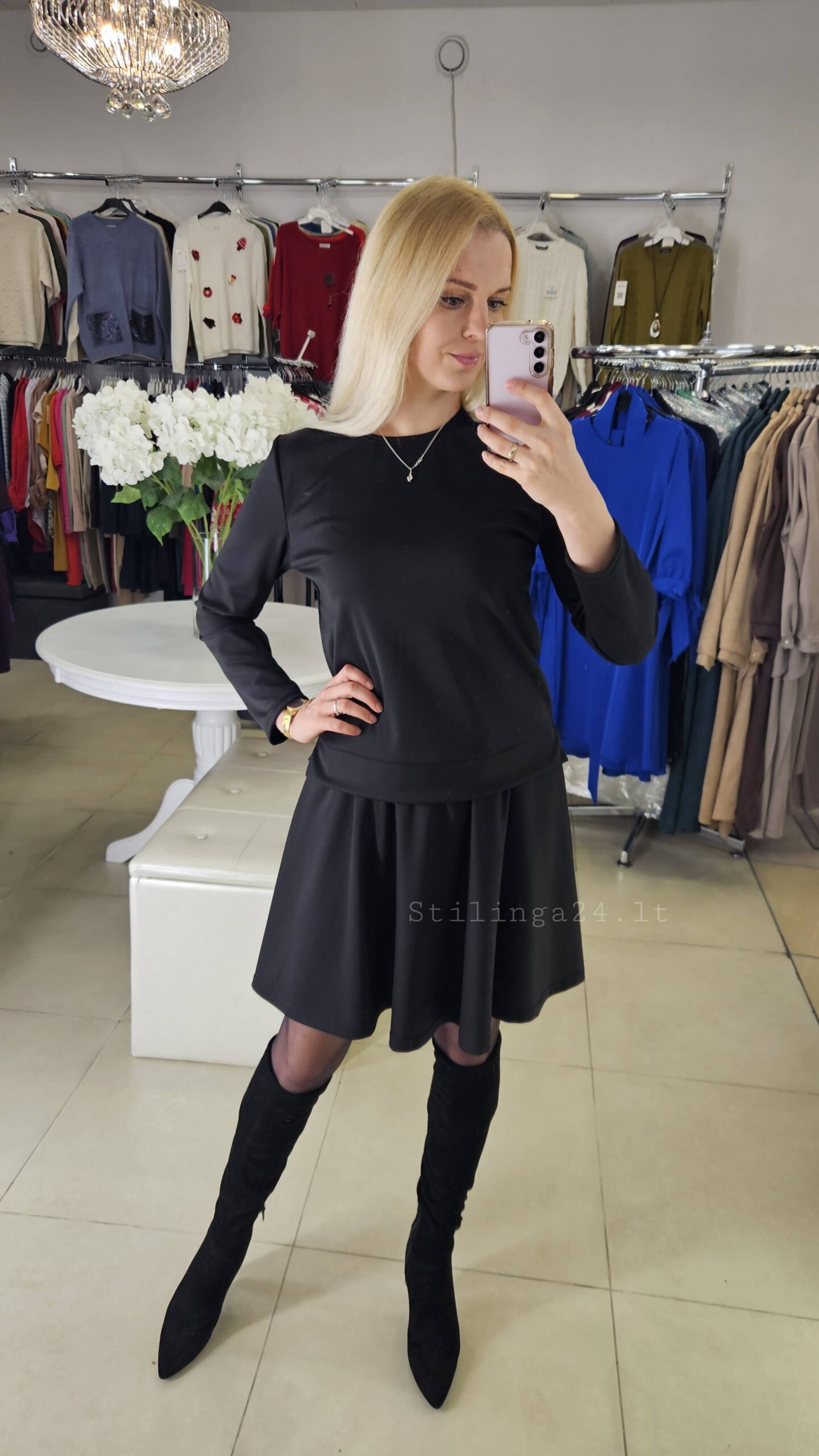 Praktiškas ir universalus trikotažinis kostiumėlis, juodos spalvos